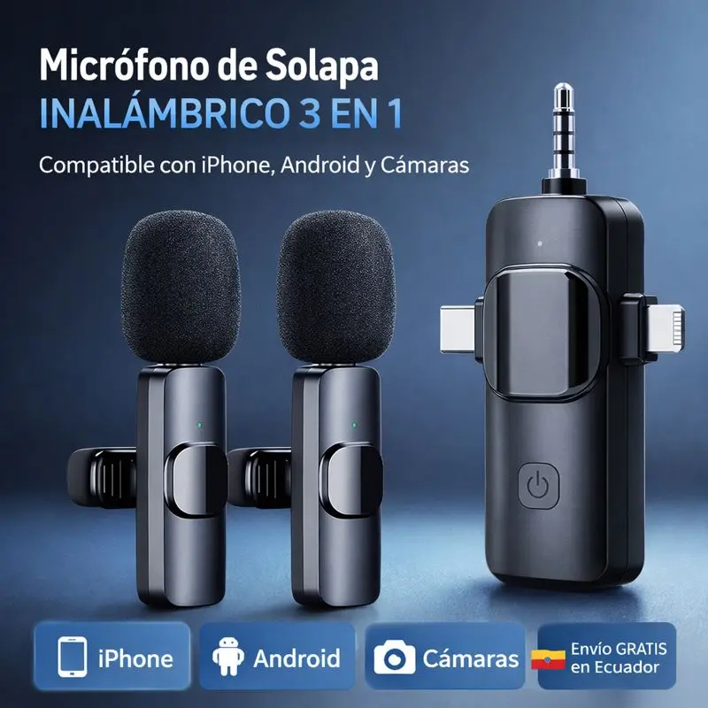 🔌 Receptor 3 en 1 (Lightning + Tipo C + AUX)
